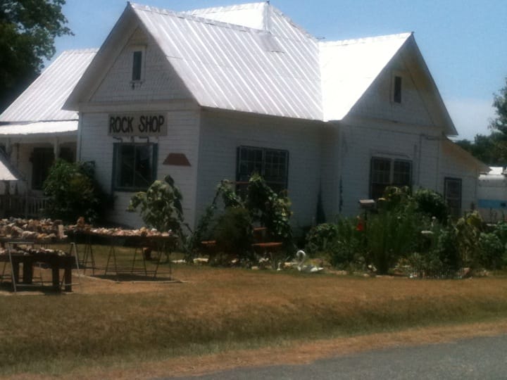 I mentioned things like the Grisham-esque Painted House and Jim’s Boot Repair (above) in Lockesburg in the first 71 post, but there are a couple of other things worth mentioning in the small town: a Fenton shop that looks fun to explore and a rock shop near the Painted House.