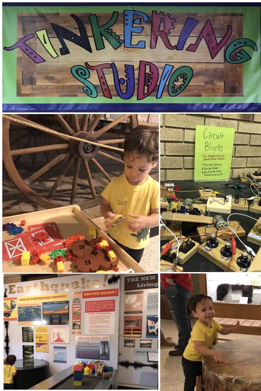 As a mom and former educator, I love when I see educational places put in place tools that help to make learning fun. I can recall many of my former students grumbling in protest every time we scheduled a museum visit for a field trip. For many kids, the word museum is synonymous with boring. The ASU Museum has recognized this struggle and has gone above and beyond to welcome, accommodate, and excite the minds of young learners. Throughout the museum, children will be drawn to hands-on learning exhibits that let them experience the museum in a meaningful way. But tucked away in the back is the Tinker Studio, a space that all kids will treasure. Set up similar to an art studio the Tinker Studio has all kinds of found objects and learning stations. From drawing to circuitry, construction, building and more, children are encouraged to delve in and literally get their hands dirty.