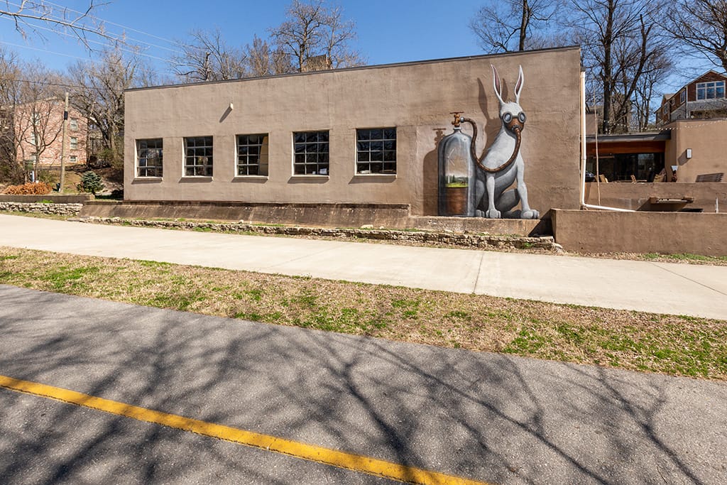 Just past North Street is the Marion Orton Recycling Center and this 20-foot-tall iron and steel tree sculpture from Eureka Springs blacksmith artist John Stalling, with “bark” made from aluminum cans and branches that frame a recycling symbol.