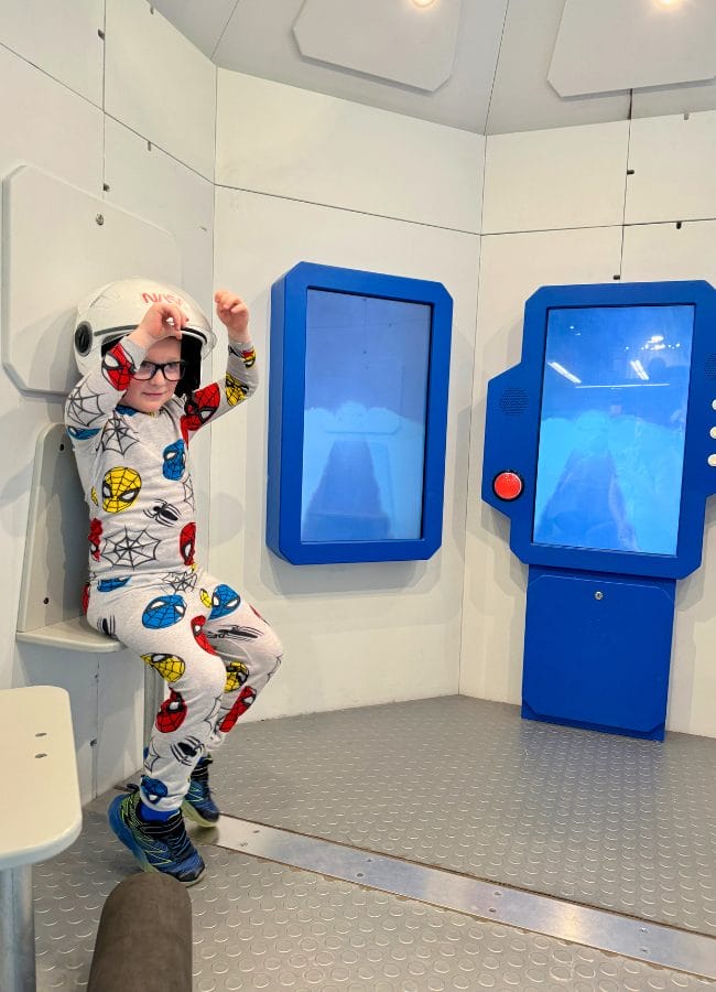 Amazeum visitors can explore space in a traditional moon rover. A traveling exhibit on loan from the Omaha Children’s Museum allows children to act like astronauts. A rocket launcher helps them learn about velocity and the distance a rocket may travel to visit the moon, sun or planets. Children can also dress like astronauts, sit inside a rocket, or drive a Mars rover.
