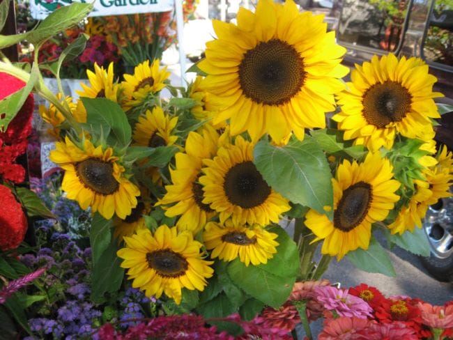 One booth that has steady sales and lots of return customers each week is Dripping Springs Garden. The garden’s founders, Mark Cain and Michael Crane, man their spot on the southwest corner of the square with infectious enthusiasm for the beautiful bounty they sell.