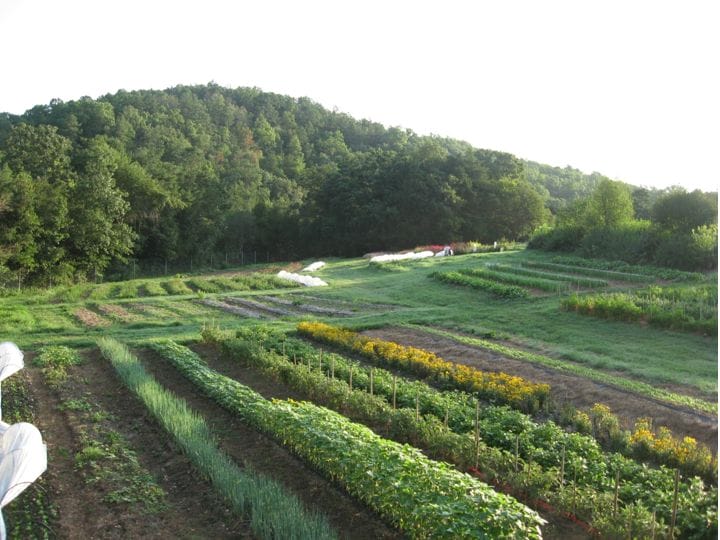 As visitors drive the final few miles to the farm, off Arkansas Highway 21, it’s easy to see why they chose this location. The small creek that wanders through the woods beside the dirt road feeds the irrigation source for Dripping Springs’ crops, and the bluffs lining the road are made up of “karst” stone — a natural limestone formation that acts as a filter system for ground water in the Ozark mountain region. Karst geology also aids drainage in planted fields, a bonus during wet seasons.