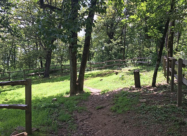 Traveling east, Choctaw Vista lands you right on the state line between Arkansas and Oklahoma. Originally, a survey marker here marked the boundary between Arkansas and the Choctaw Nations. The State Line Trail also ran through the area and was used until around the 1930s, mainly by moonshiners trying to evade the law on either side of the state line.