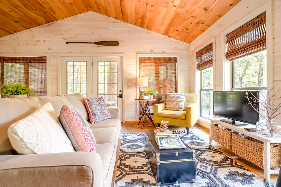 The Hiker Hut is ideal for individuals or couples who really want to get away from it all. This completely-private property is nestled in the national forest and has direct access to the Syllamo Bike Trails with over 50 miles of hiking and biking trails. This is an absolute getaway! The Hiker Hut is remote and quiet, and guests are likely to spot turkey, deer, fox, and maybe even a bear or two.