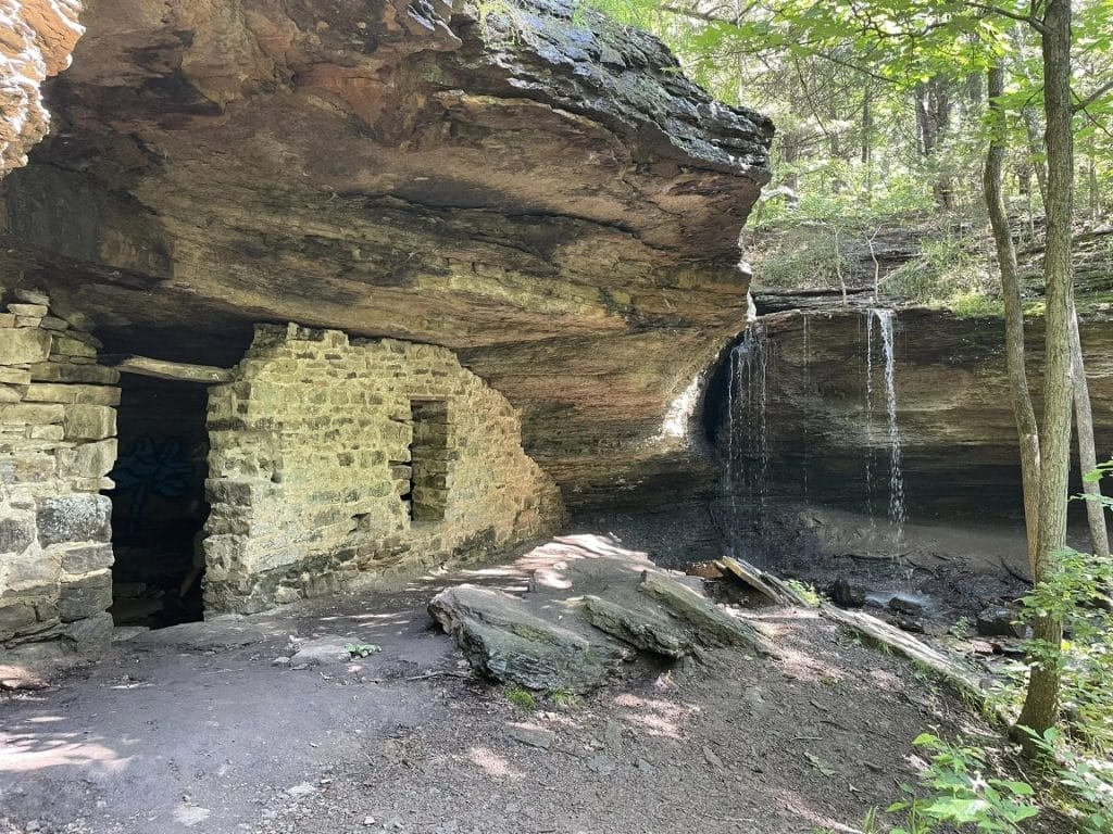 Indian Rockhouse is a massive natural bluff cave near the Buffalo National River that has been used by people for nearly 9,000 years. Archaeologists have found tools, storage pits, woven baskets and even ancient burials inside. Evidence shows that it served as both a shelter and a sacred place for Native Americans and local lore tells that Confederate soldiers may have hidden here during the Civil War. The shelter’s scale is breathtaking, with a natural skylight and spring-fed pool flowing through. Visitors can reach it by hiking the 1.75-mile Indian Rockhouse Trail at Buffalo Point. It’s a moderately challenging hike that winds past old mines and streambeds before opening into the enormous rock shelter.