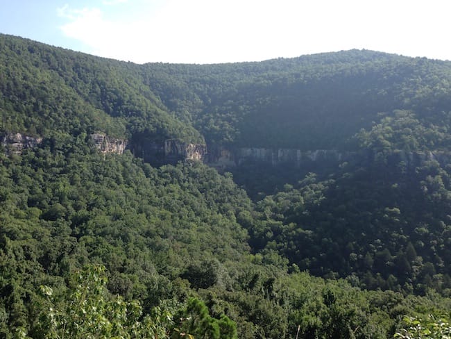 There are several variations on how to hike the Compton Trail. The most common way is parking at the trailhead and hiking down to Hemmed-in Hollow, but the trail splits at the bottom and hikers can also visit the Buffalo River to fish or swim. A shorter hike of just an hour from the trailhead takes hikers to a clearing, a popular camping and picnic location, with a nice lookout point over the valley. Hiking up from the river is also an option: during a float trip between Steel Creek and Kyle’s Landing the trail takes off from the north side of the river for about half a mile to Hemmed-in Hollow, a fun side trip that floaters in sandals can easily manage.