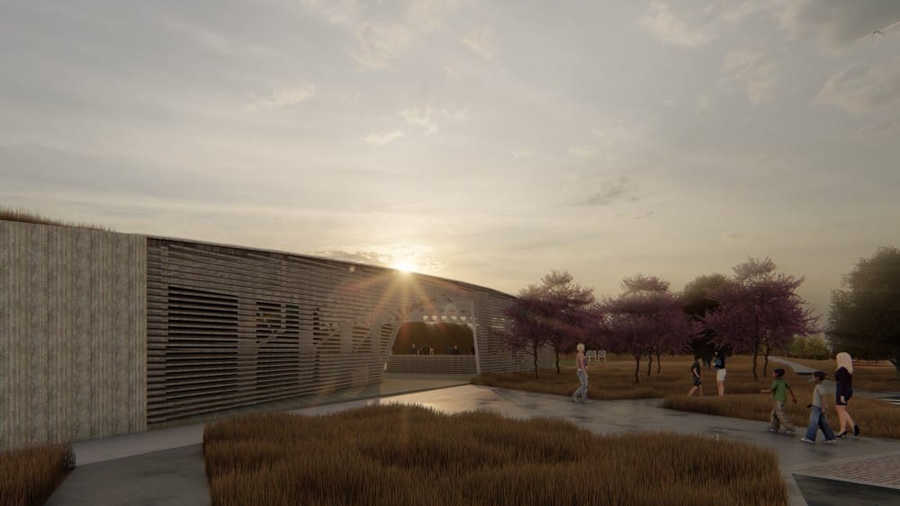 The amphitheater and stage will offer a gathering place and an intimate, small-scale performing arts space / Rendering: Courtesy, Walton Family Foundation