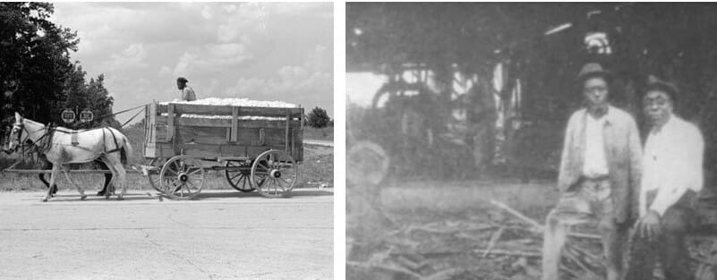 (Left) Crittenden County cotton on the way to the gin. (Right) John Claybrook at his sawmill circa 1930.